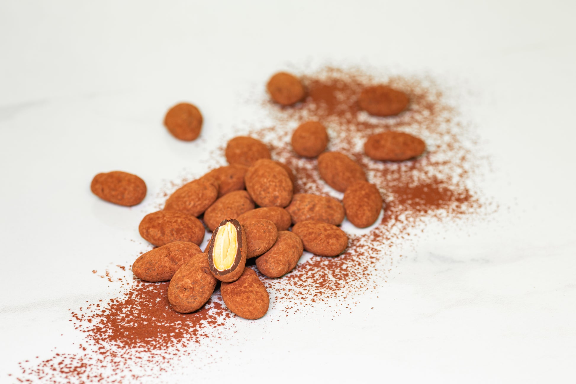 150g of In house roasted Italian almonds, coated in 62% Dark chocolate