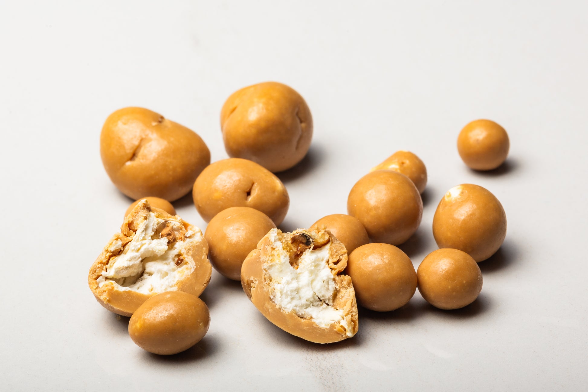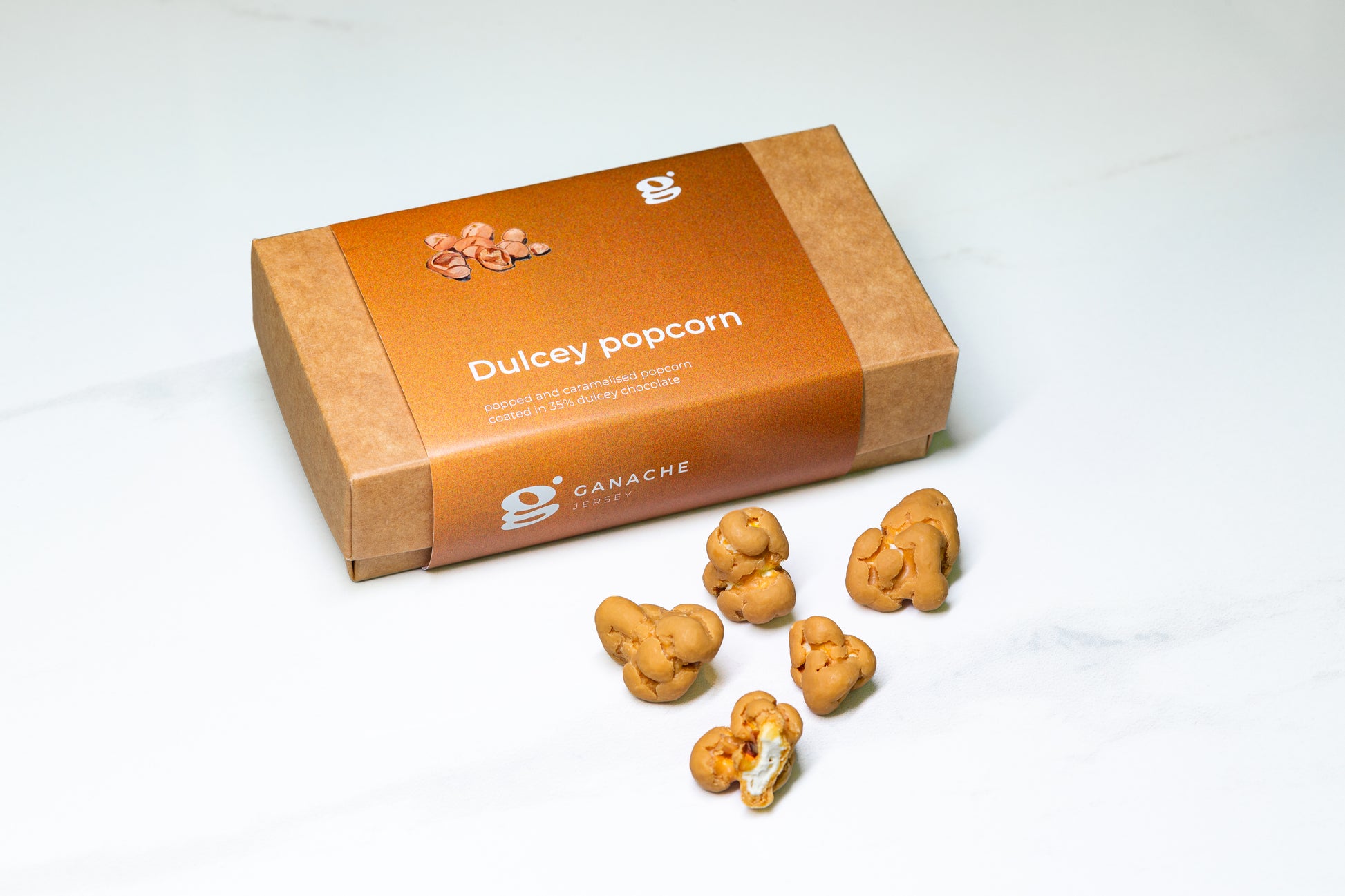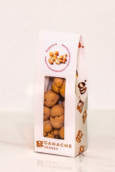 115g of Home popped and caramelised popcorn, coated in caramelised white chocolate.